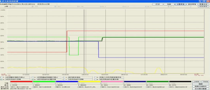 24 日 13 时 02 分,#9 机组负荷 454MW,给水流量 1513 t/h,主汽压力 19.5MPa,总煤量 237 t/h,总风量 1815t/h,锅炉六大风机、六台磨煤机、两台空气预热器及两台给水泵正常运行,送风机、引风机及一次风机动叶调整全部在自动模式。