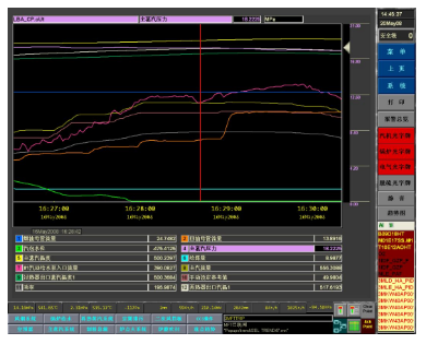 16:30分由于燃量减少太多,负荷仍为190MW炉侧主汽温度开始下降,同时主汽压力也开始下降,负荷及手动参考值逐渐下降,