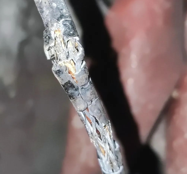 依旧通路,看来是线的问题了,正常情况下就比较难办,考虑现场环境,高温高压,先拆除穿线管查看,果然,烫坏了,连电了。
