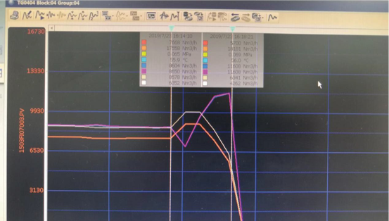 ③通过查看阀门诊断软件,酸性气量波动期间阀位无明显波动;查看调节阀规格计算书,到达联锁动作时阀位值应在6%左右;根据诊断结果,调节阀阀位保持在13%,未发生阀位大幅波动;此次酸性气量波动与调节阀无关。