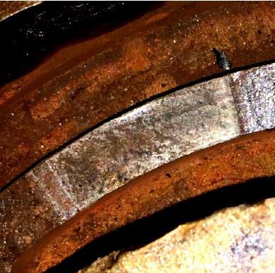 2.中间轴上部轴承目测无明显损坏,中间轴下部轴承滚动体研磨损伤。