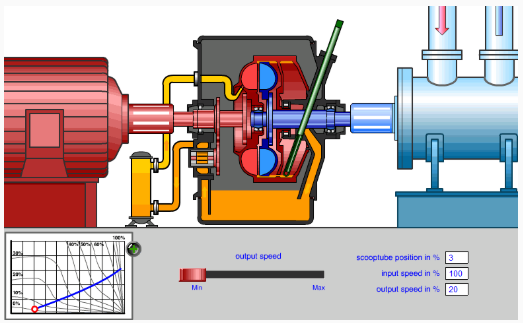 液力耦合器的传动主要通过泵轮和涡轮的相互作用来进行。泵轮安装在输入轴上,涡轮装在输出轴上。