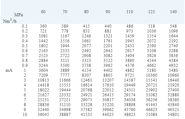 表2-2 合成塔主线气体流量不同压力的修正表
