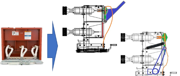 接地盖板也可通过电机和弹簧闭合,使接地组具有关合能力。