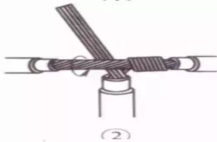 ①将支路芯线的线头与干线芯线十字相交,在支路芯线根部留出5mm,然后顺时针方向缠绕6~8圈后,用钢丝钳切去余下的芯线,并钳平芯线末端。