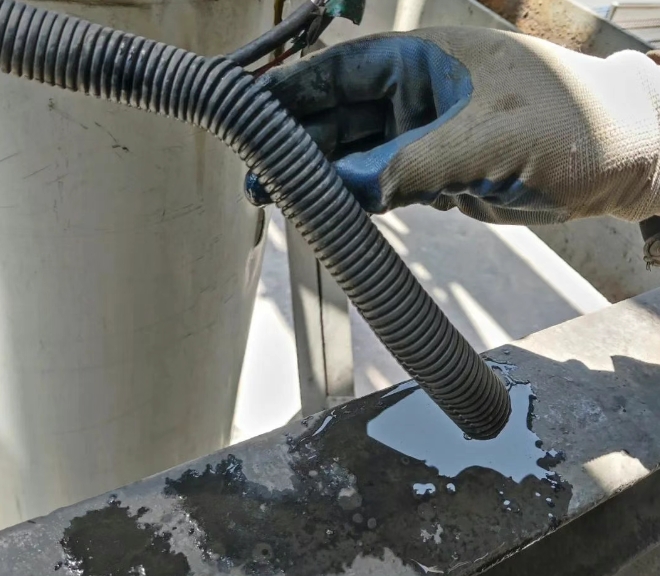 拆除保温铁皮,扒开蛇皮管,发现管内有积水,把积水放干净。