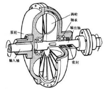 液力耦合器的传动主要通过泵轮和涡轮的相互作用来进行。泵轮安装在输入轴上,涡轮装在输出轴上。